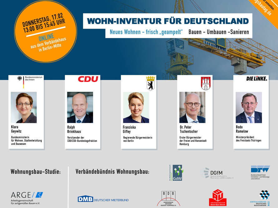 Chaos bei der KfW-Förderung, deutlich zu wenige bezahlbare Wohnungen: Die Bundesregierung steht vor enormen Herausforderungen in der Baupolitik. Das ambitionierte Ziel der Regierung scheint auf wackeligem Fundament zu stehen: 400.000 Neubauwohnungen pro Jahr – 100.000 davon Sozialwohnungen. Gleichzeitig fordert die Regierung immer mehr Klimaschutzmaßnahmen. Doch für diese zentralen Vorhaben fehlt das Geld. Wie geht es mit den Förderprogrammen weiter? Wie soll Deutschland wohnen? Was ist zu tun, um wirklich bezahlbaren und klimafreundlichen Wohnraum zu schaffen? Erste Antworten darauf gab es auf Deutschlands Branchen-Gipfel der Bau- und Immobilienwirtschaft: dem 13. Wohnungsbau-Tag am 17.02.2022 in Berlin.